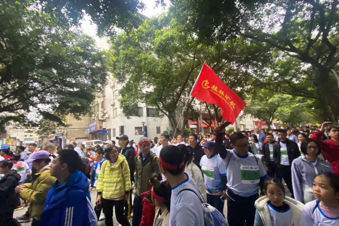 3月26日上午8:00,2023年桂林馬拉松在桂林市中心廣場(chǎng)鳴槍開跑。來自全球11個(gè)國家和地區(qū)的3萬名選手,齊聚山水甲天下的煙雨桂林,在賽道上熱血奔跑。桂林礦機(jī)的跑團(tuán)成員們,高舉桂礦旗幟,縱情狂奔,成為賽道上一簇耀眼的光芒。